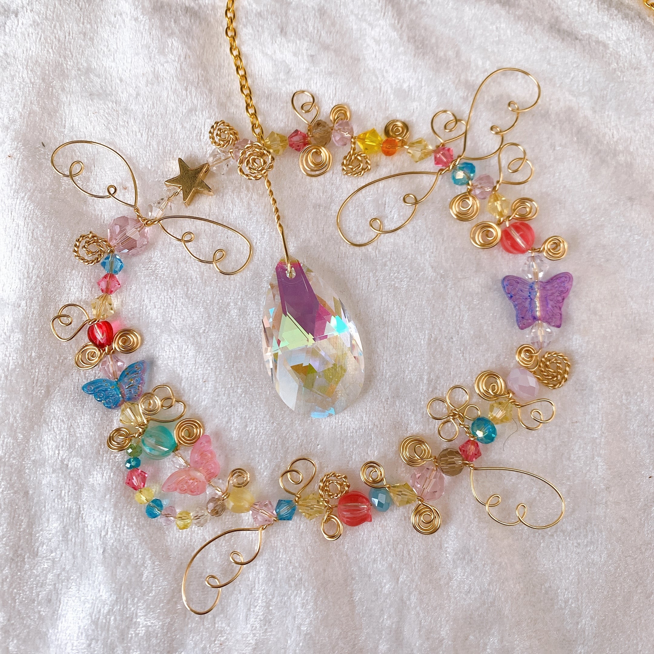 光の輪に包まれたサンキャッチャー。自由に思うままに、ワイヤーを動かしながら、あなただけの光の輪を作っていきます。