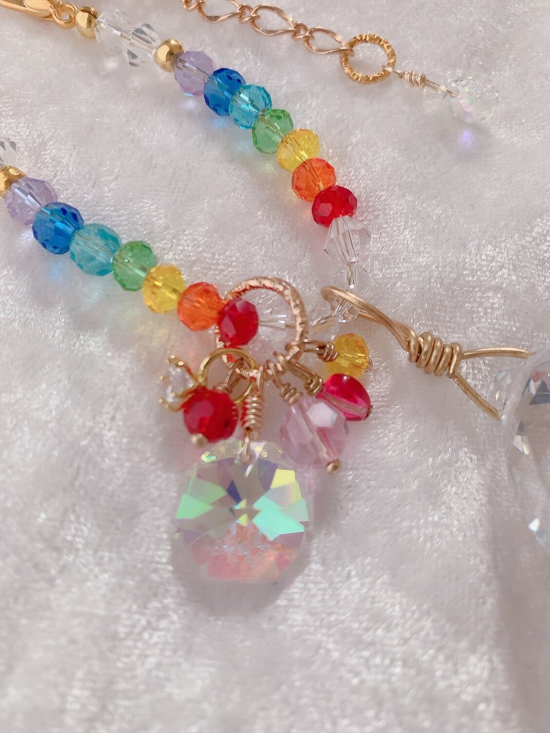全チャクラのカラーを取り入れたエネルギッシュなカラーです♪チャーム部分にグラウンディングカラーをプラスしています♡