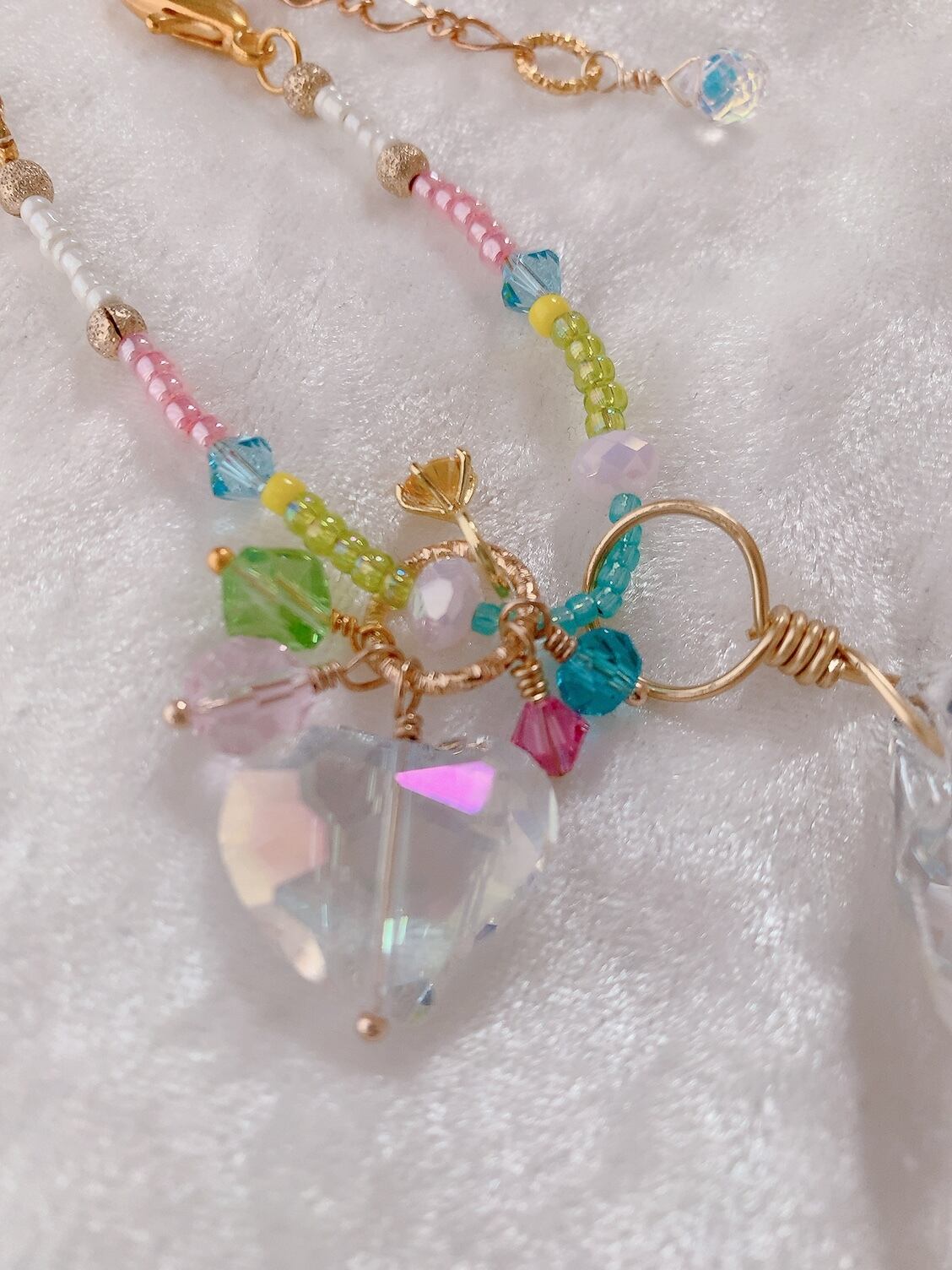 ビーズを一つ一つ丁寧に集めたチャーム付き。オプションで、長さ調節用の延長パーツもご用意しております。商品価格にはは全て、送料が含まれています。